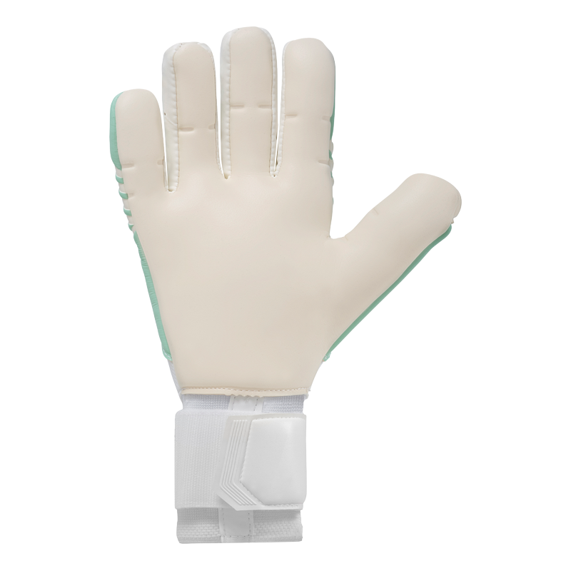 Innovative Verschlusstechnologie mit flügelartigem Aufbau sorgt für eine optimale Fixierung des Handschuhs und gibt dem Keeper maximale Flexibilität sowie Stabilität. Die Enden der Verschlusslaschen, sowie eine zusätzliche Lasche am Bund, erleichtern sowohl das Öffnen und Verschließen als auch das Anziehen des Handschuhs.